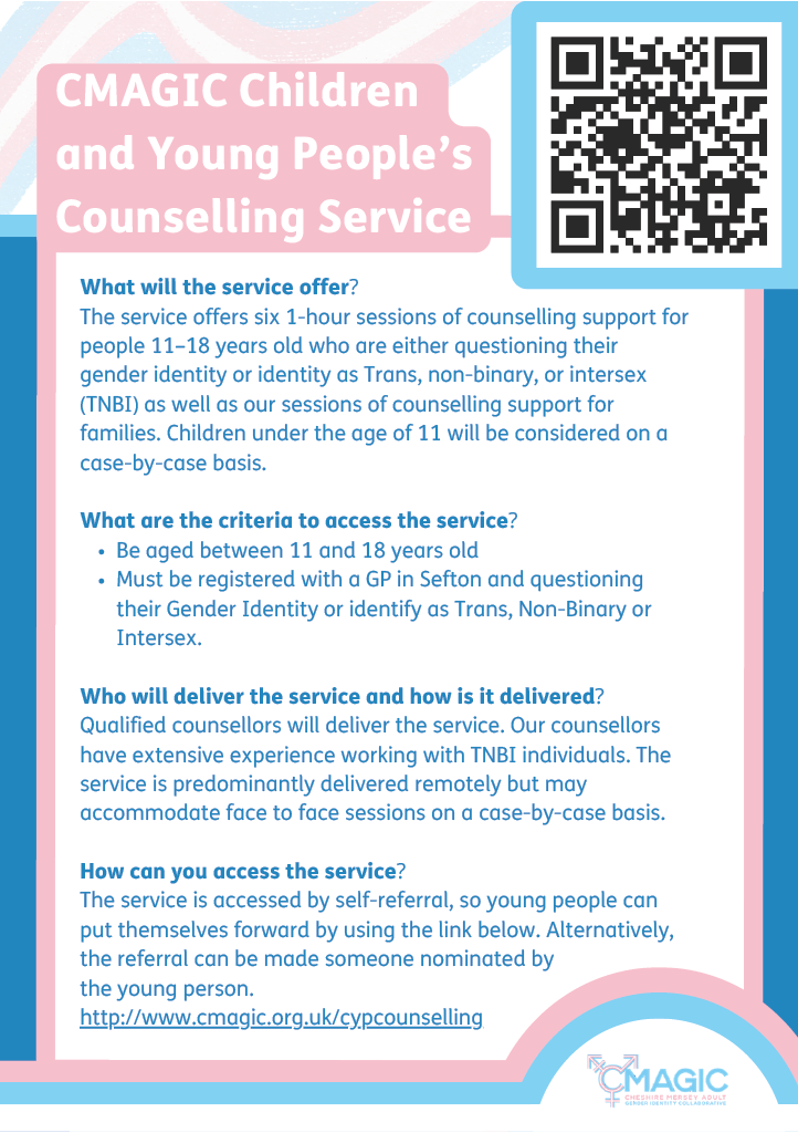 - Provide support and guidance for people with an intersex or transgender history in Merseyside.